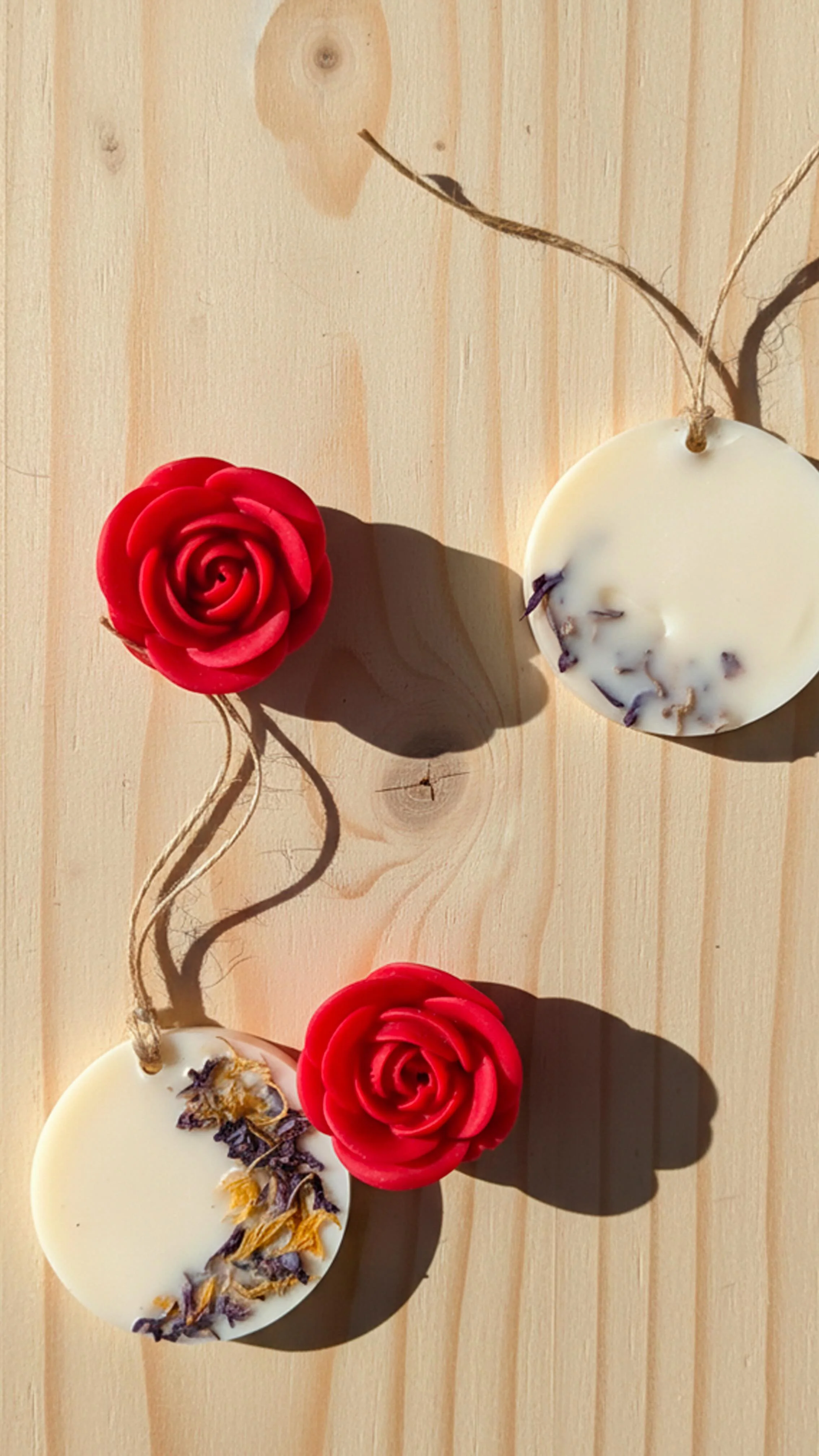 Cada pieza está hecha a mano y puede realizarse en diferentes formas —circular, rectangular u otras a elegir— adaptándose al estilo de la celebración. Un detalle bonito, útil y duradero que acompañará a tus invitados en su día a día, evocando con su aroma el recuerdo de la Primera Comunión cada vez que abran su armario.